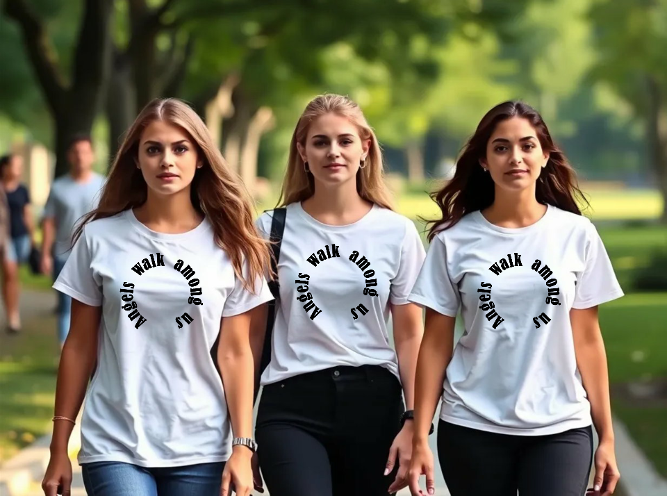 Fantastic quality and fit. The 'Angels Walk Among Us' apparel truly stands out. Highly recommend!